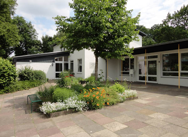 Unsere Einrichtung liegt in einer ruhigen Sackgasse in der Nähe vom Familien-Hallenbad in Heepen. Unser großer Garten mit altem Baumbestand grenzt an ein Waldstück und an einen Sportplatz.